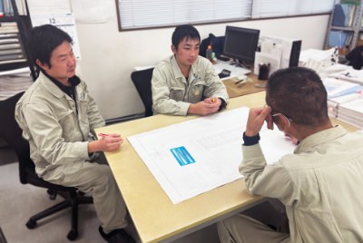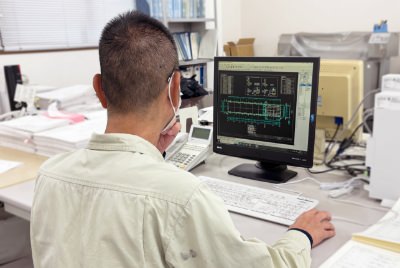 取引先からの設計図をもとに鉄骨施工図をおこし、工場で製品を作るのに必要となる加工図や現寸をCADを使って作成します。